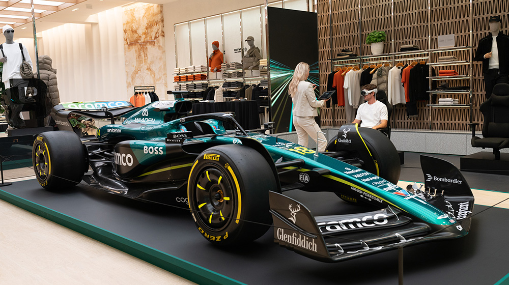 Eingeführt im Vorfeld des Grand Prix von Singapur, feierte diese innovative Aktivierung ihr Debüt exklusiv in ausgewählten BOSS Stores in London, Paris, Düsseldorf, Barcelona, Las Vegas, Dubai und Singapur. Gemeinsam haben BOSS und das Aston Martin Aramco Formula One™ Team das Fan-Erlebnis im Motorsport revolutioniert – indem sie die Fähigkeiten von Elitefahrern entschlüsselt und den Geist eines echten BOSS erforscht haben.