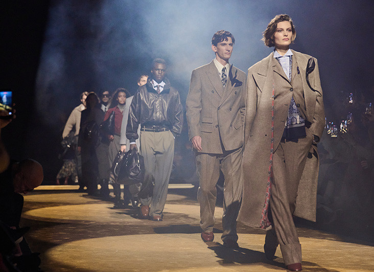 In outerwear, luxurious fabrics are combined with technical materials borrowed from sportswear, creating sophisticated, hybrid styles with an unexpectedly tactile richness. Modern finishes sharpen familiar forms into statements of contemporary authority – seen in nylon trenches with tailored lapels in rich brushed alpaca, and leather coats bonded with sumptuous cashmere.