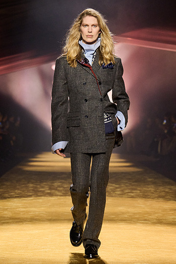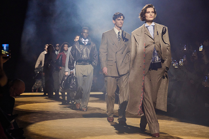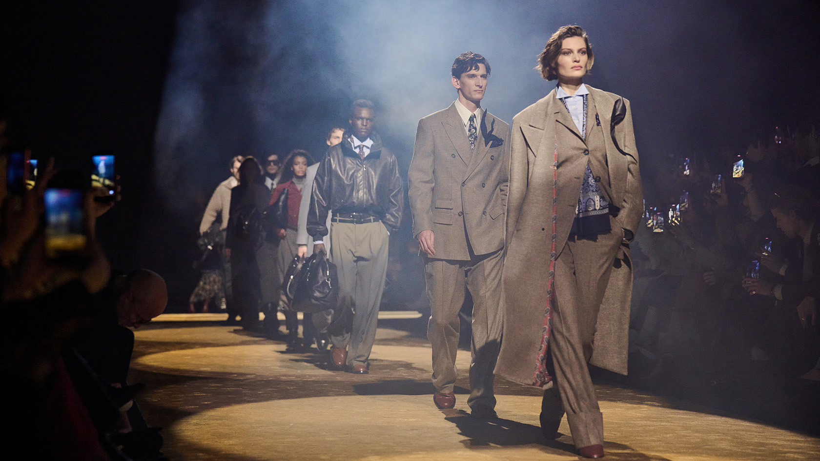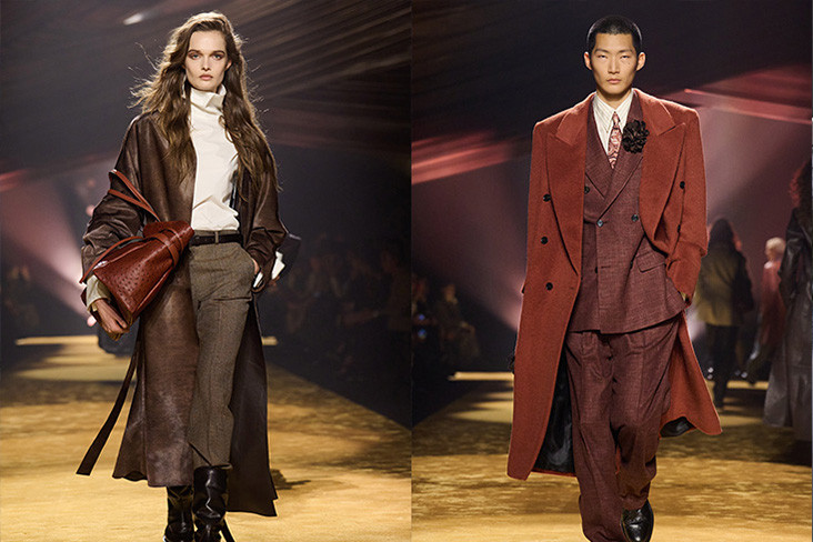 The minimalist industrial space of Rubattino56 set the stage. Bands of gold material stretched over the catwalk, and light and shadow shaped the story of the collection as a diverse cast of models walked the golden runway.